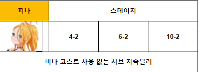 피나는 비나에서 활용되는 지속 딜러중 하나입니다 딜 지분도 코스트 사용없이 꽤나 괜찮은 편이라 비나 하드코어 , 익스트림 초기시기에 큰 활약을 하게 되지만