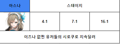 아스나는 이즈나 없찐 유저들을 위해서 포함 시켰습니다