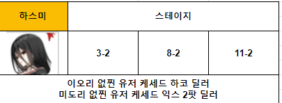 이오리가 파밍이 가능한 14지역이 열리고 이오리를 획득하게 되면 자연스럽게 케세드 2군 딜러로 밀려나지만 일단 이오리 없는 시기때 최대한 맞춰가야하니 표에 넣게 됐습니다