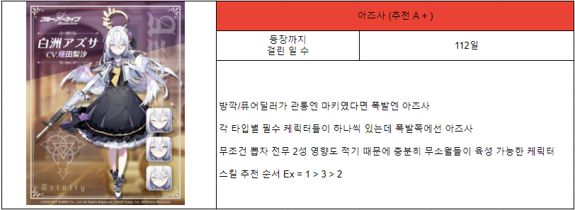 트리니티는 서포터들이 많아서 상대적으로 스킬북 BD 투자하기가 편한 편에 있어서 육성에 대한 부담도 적습니다